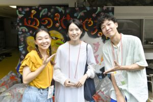 Q1.高尾の山奥にある学校で妖怪になれるなんておもしろそうすぎる! とわくわくしてプロジェクトに参加しました。学校に泊まり込んで稽古していたのですが、水の入っていない廃プールや大きなログハウス・劇場に囲まれ、食堂でみんな一緒にごはんを食べたりして、いつかの夏休みへトリップしてしまったような毎日でした。