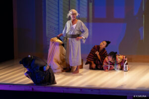 まず、やはり原作です。これでもか! というほどしっかり原作を踏襲していて、原作の物語が分かることを大切にしています。中高生鑑賞事業公演を沢山やっていて、「お話が分かり易かった」という感想が多く、とても好評です。かつ、いわゆる現代化というか、原作に描かれていない要素もかなり盛り込んでいます。大正を時代背景にした『伊豆の踊子』を今に置き換えるとこうなるのでは? みたいな。衣装も、大正当時の着物をイメージした役もあれば、原宿にいる若者のような服を着ている役も。そういう所も楽しんでもらっています。あとは、先ほどお話したお座敷シーンも見所のひとつかな。