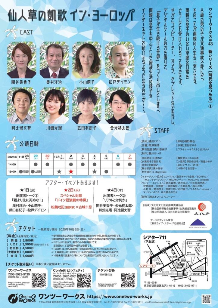 ワンツーワークス#43新シリーズ「時代を見つめる」① 『仙人草の凱歌イン・ヨーロッパ』は、1982年オーストリア生まれ、数々の文学賞を受賞している人気作家クレメンス・J・ゼッツの注目作で本邦初演!11/28~12/7、シアター711で上演する。