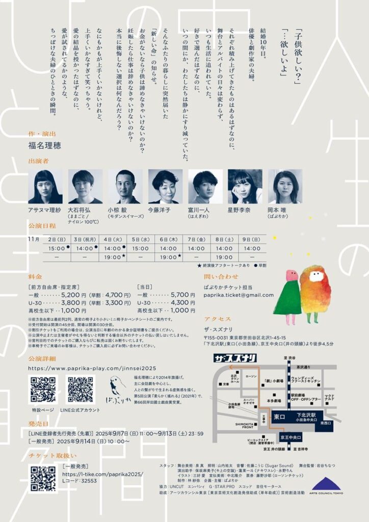 出演◇アサヌマ理紗 大石将弘(ままごと/ナイロン100℃) 小椋 毅(モダンスイマーズ) 今藤洋子 富川一人(はえぎわ) 星野李奈 岡本 唯(ぱぷりか)