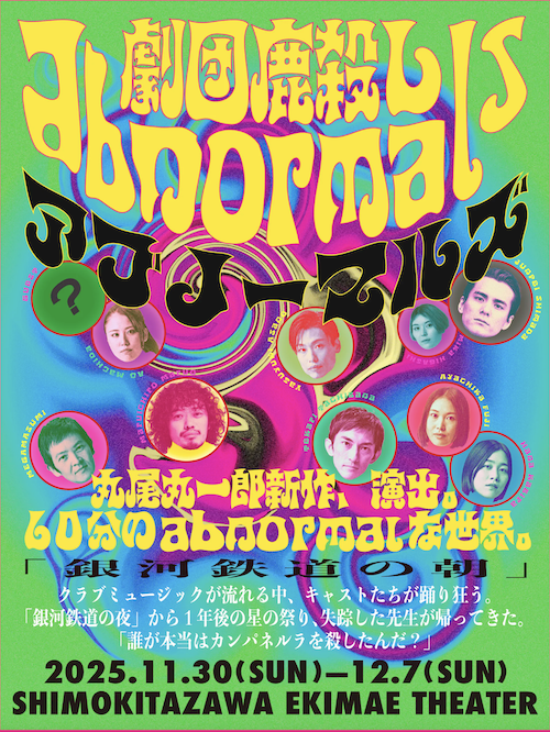 1作目は『Galaxy Train』でエディンバラ上演そのままのオリジナルメンバーでの英語+日本語のmixバージョン、2作目は劇団の伝統演目『銀河鉄道の夜』のエディンバラ上演スタイルのSPアレンジバージョン、3作目は丸尾丸一郎書き下ろしの新作でエディンバラで得たインスピレーションを生かして演劇への遊び心満載の新企画。どれも上演時間は60分の予定とあり、1作品と言わず2作品、3作品と楽しめる劇団鹿殺しならではの企画力で思惑たっぷりの三作同時上演となっている。
