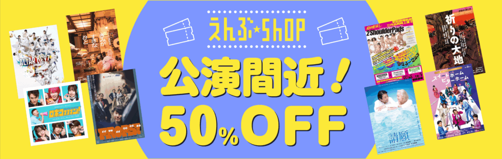 今回は特に12月初旬までに公演が始まる作品をピックアップして「演劇鑑賞活性化キャンペーン」を実施!どれもこれも、こだわり深い粒ぞろいの作品が50%オフで購入していただけます。