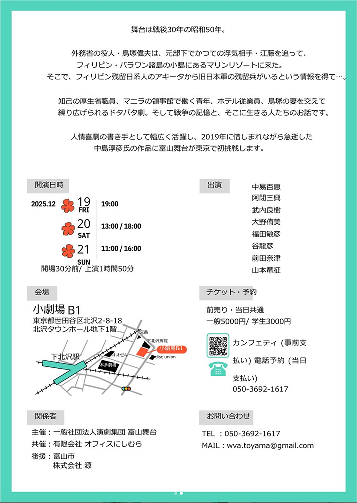 演劇集団 富山舞台 第9回公演 in Tokyo『恥ずかしながらグッドバイ』