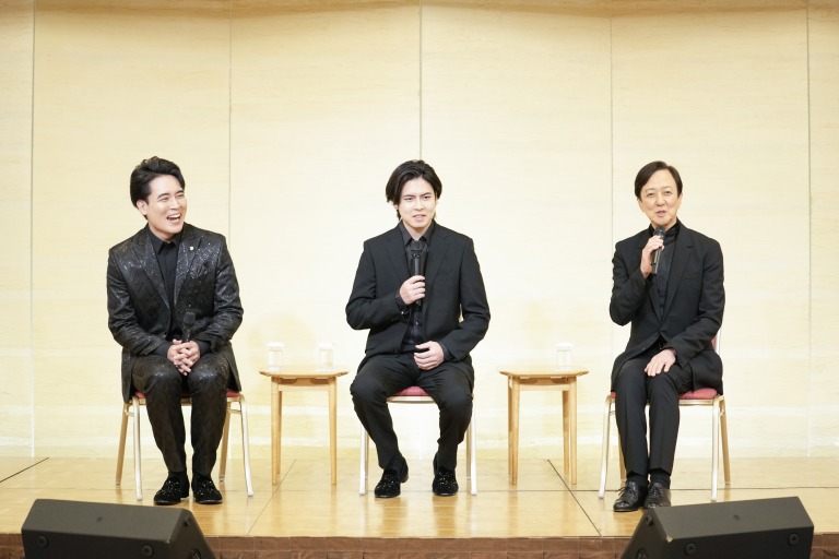 シンガーソングライターとしてのみならず、作詞・作曲も多数手がける竜蔵、演歌歌手として活躍し、「輝く!日本レコード大賞」の新人賞や「日本ゴールドディスク大賞」のニューアーティスト賞などを受賞して、演歌界の注目を集めている徹二。この3人の個性が融合してどんなコンサートとなるのか。11月上旬、この取材会が都内で行われ、坂東玉三郎、木村竜蔵、木村徹二が出席、挨拶の後、質疑応答が行われた。