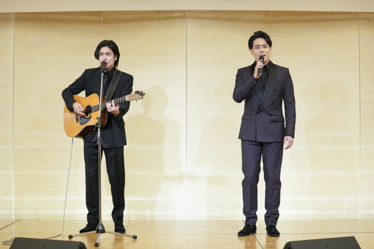質疑応答の後は、ミニコンサートが行われた。まずは竜蔵が「雨」(玉置浩二、安全地帯)を披露。シンプルなピアノの伴奏で、哀切なバラードをのびやかに歌い上げた。続いて徹二が「太陽は燃えている」(エンゲルベルト・フンパーディング)を披露。こぶしのきいたパワフルな歌声は、まさに“アイアンボイス”。最後に「竜徹日記」として、オリジナル曲「めぐりめぐる」を披露した。抜群の歌唱力と、まったく違う個性を持った木村兄弟の才能と魅力が、短い時間のなかでも強く印象に残るミニコンサートとなった。