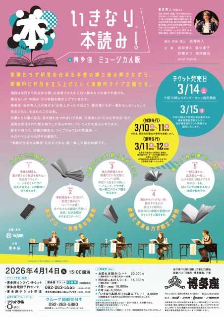 作家・演出家・岩井秀人が進行・司会・演出を務める人気舞台企画『いきなり本読み!』が、2026年4月14日(火)に、博多座にて上演されることが決定した。