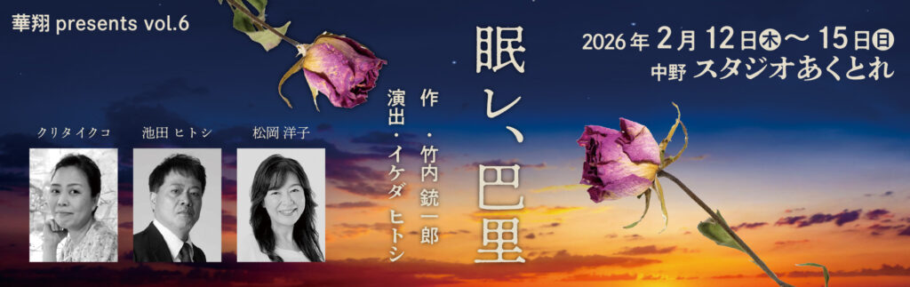 少人数の出演者による、濃密な空間での公演を続ける華翔の次回公演は竹内銃一郎作「眠レ、巴里」。