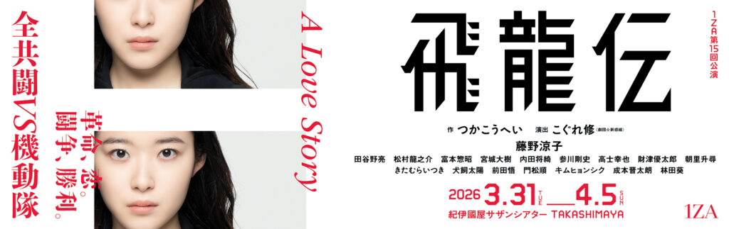 2016年に田谷野亮によって旗揚げされた「たやのりょう一座」が、本年1月に「1ZA(いちざ)」に改名。その改名後初の公演となる作品は、つかこうへいの名作戯曲『飛龍伝』。演出は、これまでも田谷野とタッグを組んでつか作品を数多く上演してきた、劇団☆新感線の創設メンバーこぐれ修が手がける。ヒロインの神林美智子役にはドラマや映画で活躍中の藤野涼子。ヒロインを囲む俳優陣として、田谷野亮、松村龍之介、富本惣昭、宮城大樹、内田将綺、参川剛史、高士幸也、財津優太郎、朝里升尋、北村一貴、犬飼太陽、前田悟、門松順、キムヒョンシク、成本晋太朗、林田葵といった多彩な顔ぶれが集合した。