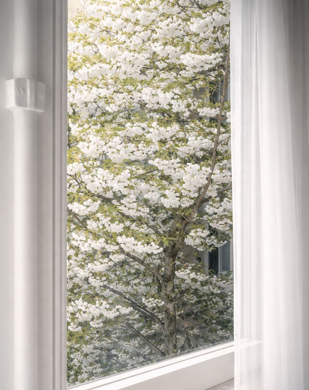 窓から手を伸ばせば触れられるほどにひらいた白い花びらには、蜂たちが蜜を求めて飛び交っています。窓を大きく開けることはできません。パリの家には網戸というものがないのです。