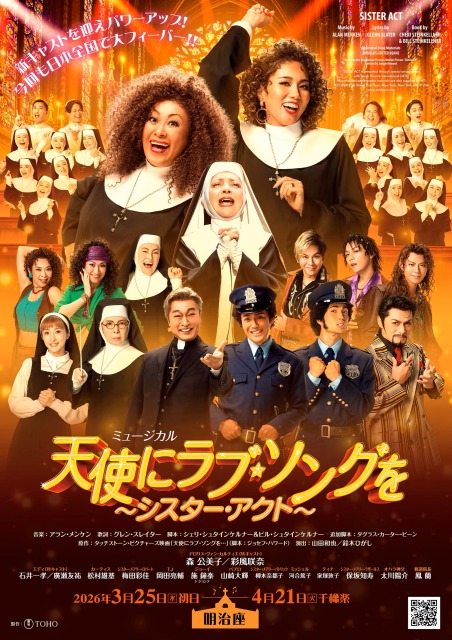 『天使にラブ・ソングを…』のタイトルで日本でも大ヒットを記録した映画のミュージカル版として、上演を重ね愛され続けるミュージカル『天使にラブ・ソングを~シスター・アクト~』が、3月25日~4月21日、日本橋浜町の明治座で上演される(のち、5月5日~7 日大阪・梅田芸術劇場メインホール、5月15日~16日長野・サントミューゼ[上田市交流文化芸術センター]大ホール、5月23日~24日宮城・仙台銀行ホール イズミティ21、5 月29日~31日愛知・愛知県芸術劇場 大ホールで上演)。