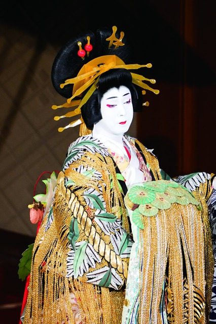 團十郎さんご襲名の時に出させていただきました。今回菊五郎となって初めての揚巻ですので、今まで玉三郎のお兄さんに教えていただいたことも大事にしながら、やはり「型が動く」ということだと思います。同じ役を何度も重ねることで、最初は教えていただいた型に自分をはめて演じて、それを見ながら模写して、そしてお手本を見ないで自分の心から出た文字を描くということが、たぶん歌舞伎のなかで受け継がれてきたことだと思います。型の模倣をしてしまうと、それは模倣でしかない。やはりそれが伝統の厳しさでもあり、難しさでもあり、面白さでもあると思うんです。教えていただいたこと、勉強させていただいたことを胸に、また新たな気持ちで、型が動いていくような揚巻を演じたい。