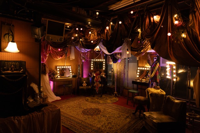 また、ザ・スズナリを “The Closet Revue” そのものに変えるべく、劇場のいたるところをネオンや花で装飾、ロビーでも踊り子たちが魅惑的に来客を招き入れるかのような演出を施し、開演前から物語を愉しめるようにこだわった。緻密に作り上げられた美術や衣裳、音楽、照明、音響効果といったスタッフワークにも注目。