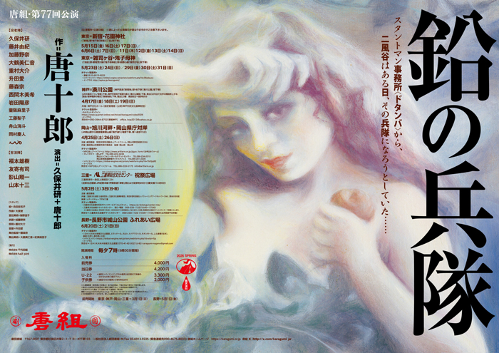唐組・第77回公演『鉛の兵隊』は、2005年に初演された唐十郎の戯曲。4月から6月にかけて兵庫・岡山・三重・東京・長野の5都市を紅テントで巡る。